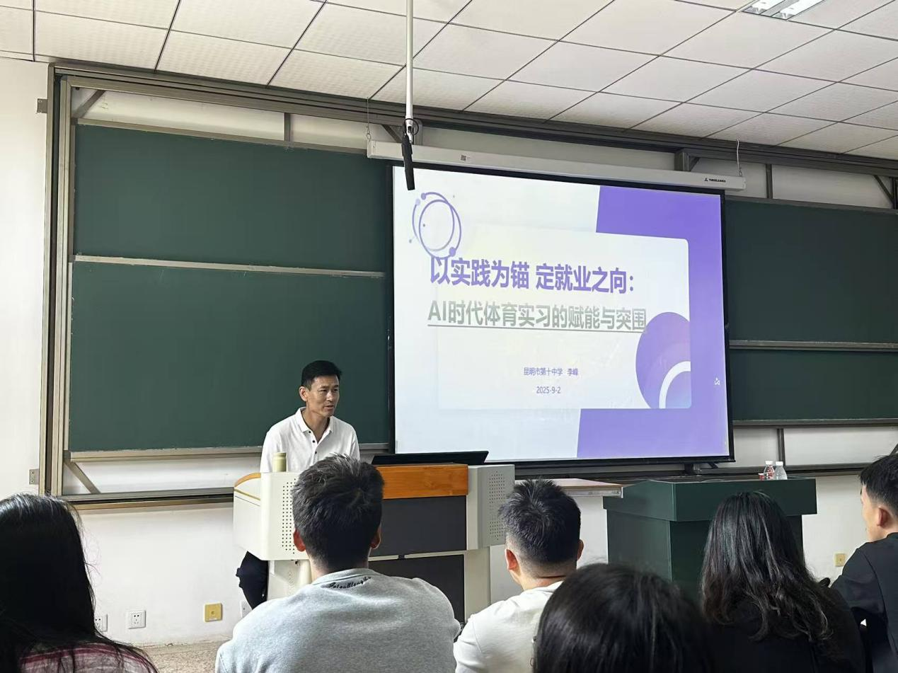 作为实习实践的首个阶段,9月1日启动的校内见习以“强化实践能力、明确就业导向”为核心,围绕理论研修、实践操作与教学能力提升三大模块展开系统化培训。理论研修板块聚焦体育教育核心知识与前沿趋势,既有《体育教材教法》专题讲解,帮助学生夯实教学理论基础;也有优秀实习生实践经验分享,为学生提供可借鉴的实操思路;同时还针对“AI时代体育实习的赋能与突围”开展探讨,引导学生把握行业发展方向,明晰职业成长路径。实践操作环节注重技能落地,通过队列队形实训,让学生熟练掌握体育教学中的基础组织技能;同步开展的裁判培训与赛事编排实战演练,从规则解读、现场执裁到赛事流程设计、细节把控,全方位提升学生的赛事组织与执裁能力,为后续基地实习储备实用技能。教学能力提升板块则以“说课”为重点,将学生按专项分组,由专业教师进行针对性指导,从教学设计逻辑性、教学目标明确性、语言表达流畅度到教学反思深度,逐一打磨优化,切实强化学生的教学核心能力。