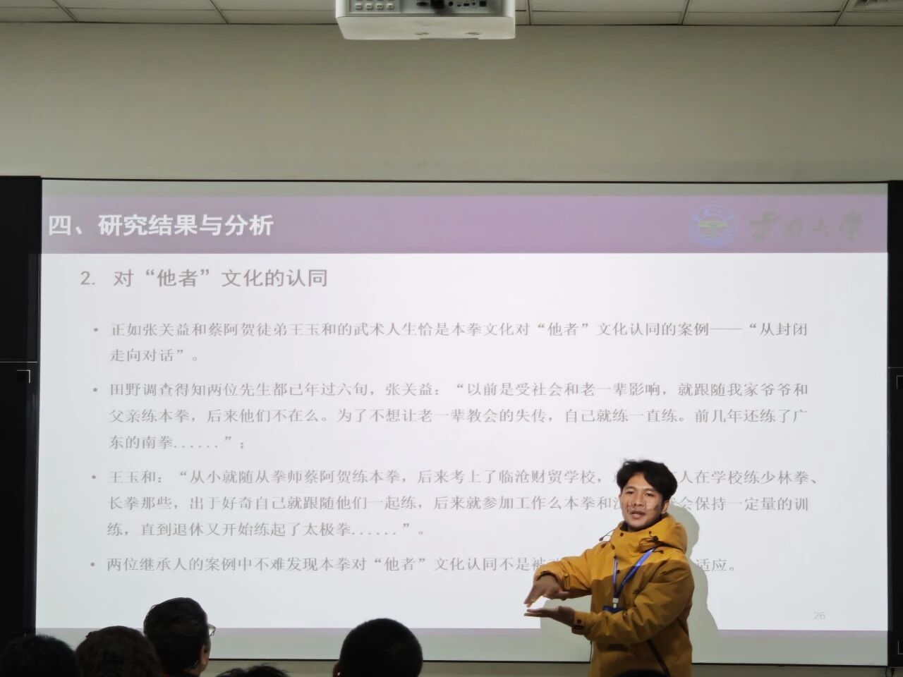 大会期间,我们师生认真聆听了多场高水平学术报告,并积极参与专题报告、墙报交流等环节。在专题报告会场,师生们围绕体育社会科学、运动训练学、武术与民族传统体育等领域的前沿议题,与参会专家学者展开了深入交流与热烈讨论;在墙报交流区域,大家系统展示了日常学习与科研中所取得的成果,与其他与会者分享研究思路与方法,并收获了诸多宝贵建议。大家一致表示将把所学理念与方法运用于实际,持续提升专业素养。