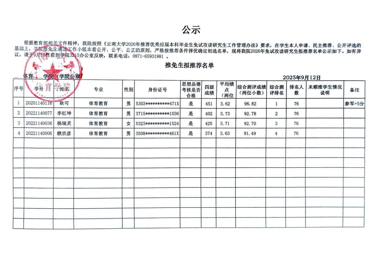 伟德bv1946官网2026年推荐优秀应届本科毕业生免试攻读研究生名单公示